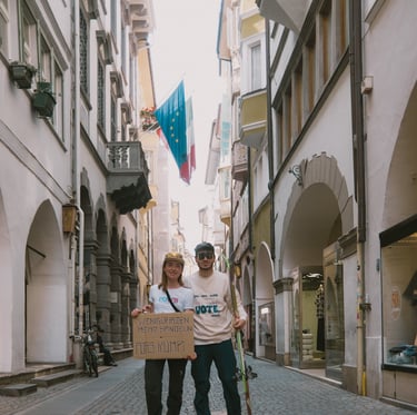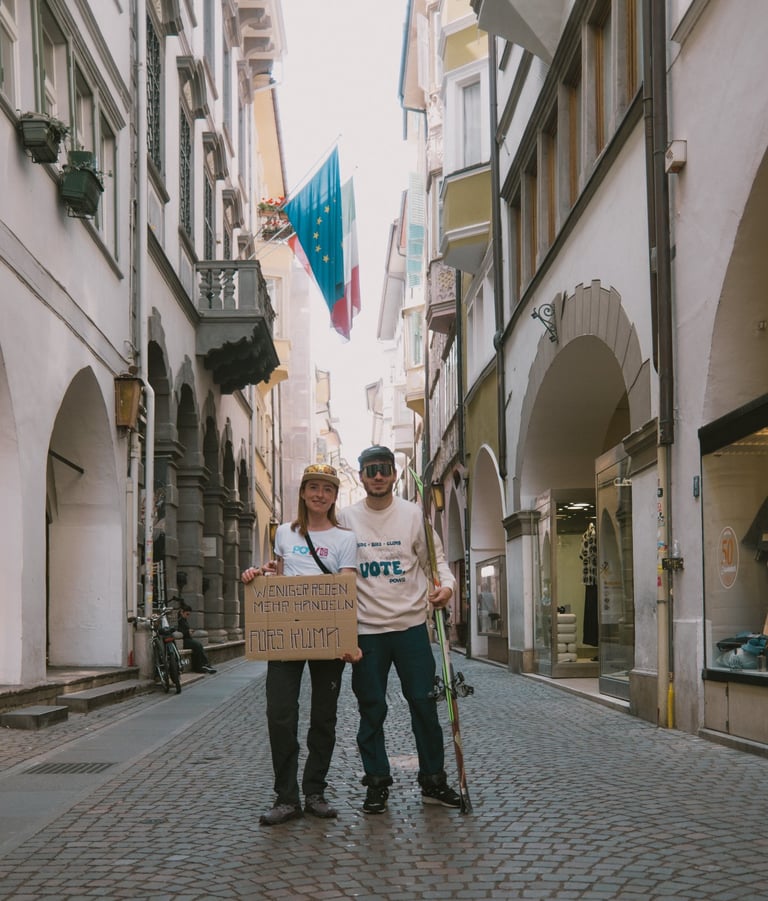 Personally, I've worked closely with over 10 communes the past two years and I’ve come to realize even more that real change starts locally — with people, in their daily lives but also with the politicians. That’s why we at POW IT, more precisely, the core team of South Tyrol, organized a small but impactful climate action right in the historic center of Bolzano.